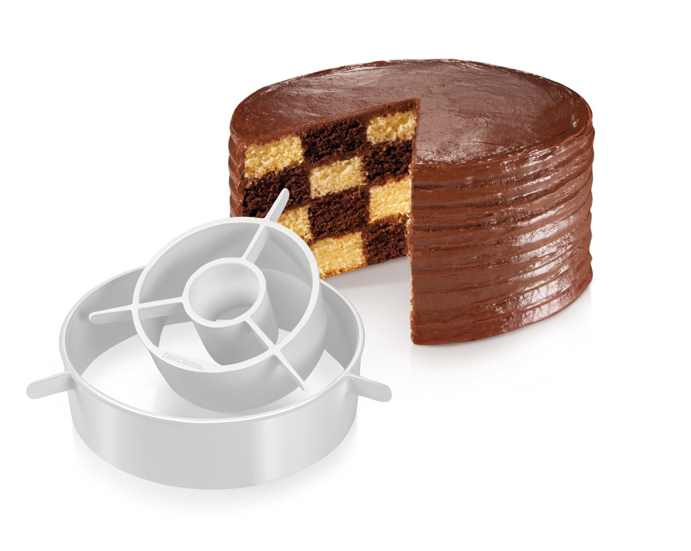 Nu kan du göra en vacker schackrutig tårta med denna speciella form. Formen passar till en 22 cm springform och gör det enkelt att dela tårtan efter att den är bakad, eller fördela färgerna innan bakning. Du kan därmed sätta ihop din tårta i precis de färger och smakvarianter du önskar. Otroligt lätt att använda och kan rengöras i diskmaskinen.