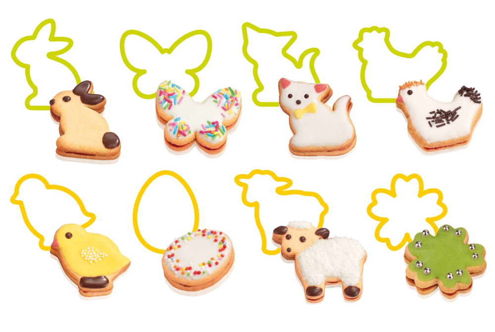 Smart utstickarset med 8 söta påskmotiv som kan användas till både kakdeg, småkakor, marsipan och fondant. De är lätta att använda och ger ett riktigt fint resultat som barnen efteråt själva kan dekorera. Formarna mäter ca. 5 x 5 cm.