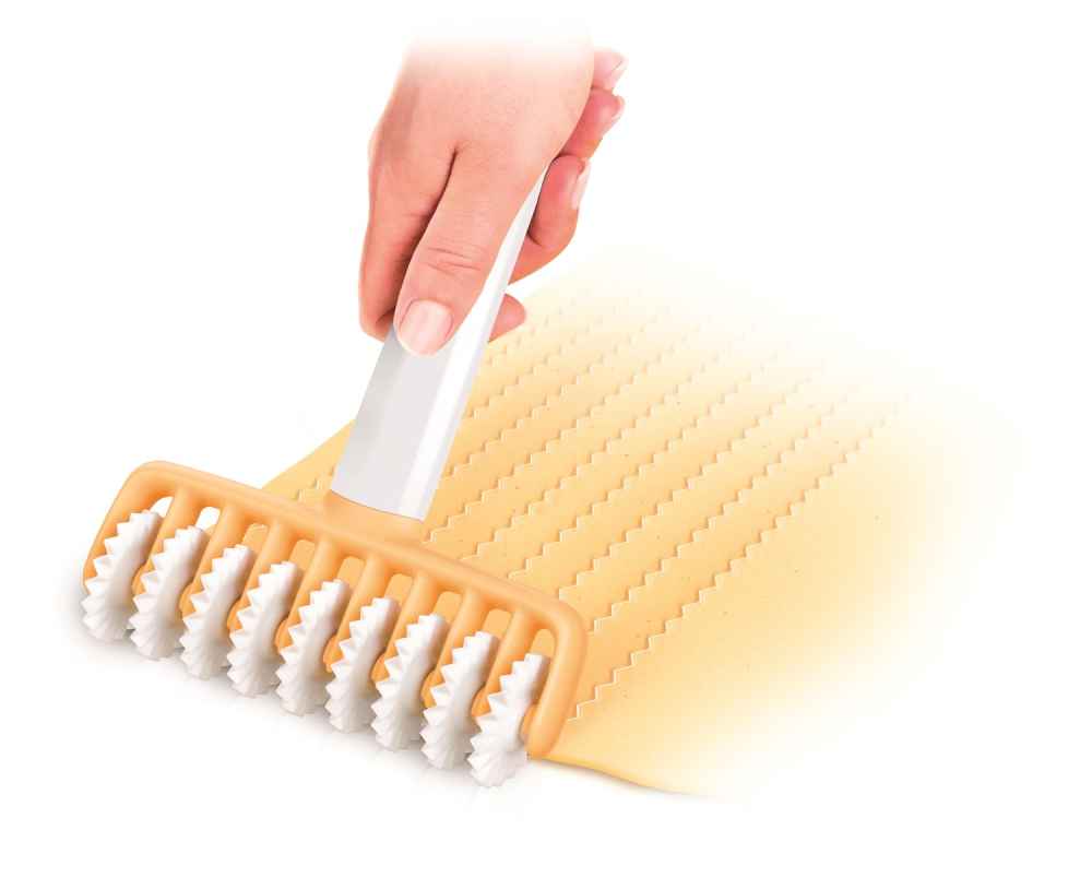 Kaksporre i plast med många möjligheter. Perfekt för både uppgifter med deg och kakor, exempelvis klejner, samt för användning vid tillverkning av hemmagjord pasta. Denna modell är utrustad med 2 olika hjulsatser som du kan byta efter behov och uppgift. Dessutom kan du ta bort hjul för att få exakt den bredd mellan hjulen du önskar. Totalt finns det 9 hjul som du kan köra med eller flytta så det passar. Därmed kan den exempelvis också vara en dubbel klejnespore genom att bara sätta i 2, och du kan snabbt göra de vackraste klejner på nolltid. Vid köp av denna kaksporre får du många produkter samlade i en, som du garanterat kommer att uppskatta. Tål maskindisk