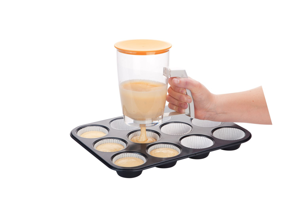 Denna degdispenser eller degfördelare som den också kallas, är den perfekta hjälpen för att fördela deg, såser eller annat flytande i rätt mängd på rätt plats. Vem känner inte till problemet med att fördela deg i muffinsformar utan att det rinner över? En degdispenser är också perfekt när det ska bakas pannkakor (En riktigt bra pannkaksfördelare), blinis eller när en läcker dessert ska dekoreras med en fruktpuré. Genom att disponera med rätt portion deg varje gång, kan du med större sannolikhet baka pannkakor och kakor i samma storlek.