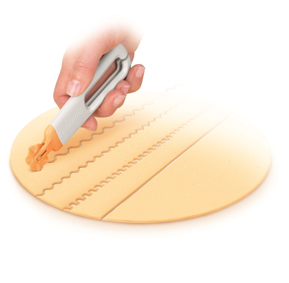 Klejnespore och kaksporre för deg och pasta i en smart design. Perfekt för både uppgifter med deg och kakor, exempelvis klejner, samt för användning vid tillverkning av hemmagjord pasta. Denna modell är utrustad med 4 olika hjul som du kan byta efter behov och uppgift. De överflödiga hjulen förvaras smart i handtaget, så du alltid vet var du har dem. Tål maskindisk