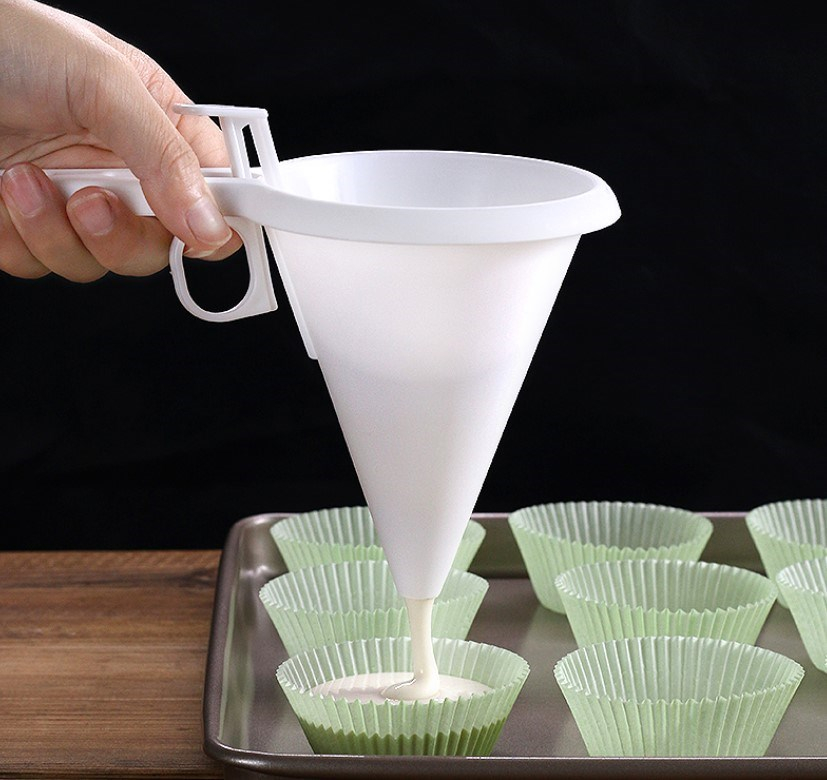 Denna smetdispenser eller smetfördelare som den också kallas, är den perfekta hjälpen för att fördela smet, såser eller annat flytande i rätt mängd på rätt plats. Vem känner inte problemet med att fördela choklad i formar eller smet i muffinsformar utan att det rinner över? En smetdispenser är också perfekt när det ska bakas pannkakor (En riktigt bra pannkaksfördelare), blinis eller när en läcker dessert ska dekoreras med en fruktpuré. Genom att disponera med rätt portion smet varje gång, kan du med större sannolikhet baka pannkakor och kakor i samma storlek. Mått 21 x 12,6 cm.