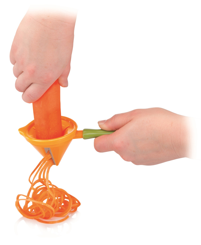 Det är lätt att göra supertunna dekorativa julienne-strimlor av morot, gurka, vit rädisa och andra spännande grönsaker med denna julienne spiralizer från Tescoma. Blanda t.ex. olika färger för att få ett visuellt snyggt resultat. Tillverkad i rostfritt stål och plast av hög kvalitet. Levereras med skyddsskärm för säker användning och förvaring. Tål diskmaskin.