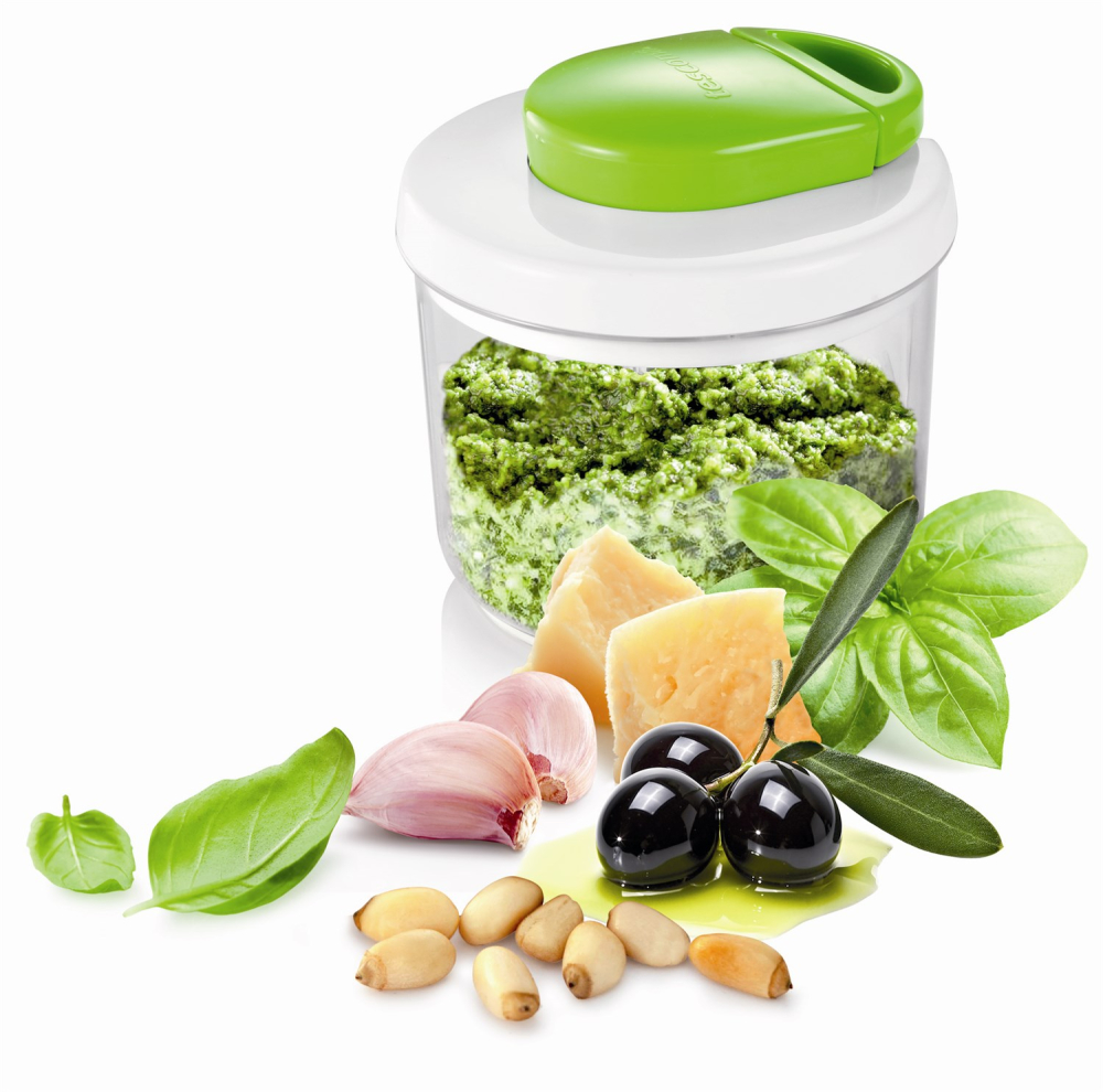 Minihackaren från Tescoma är utrustad med 3 knivar i rostfritt stål och kan användas för en mängd uppgifter i köket. Minihackaren hackar, purerar eller mixar grönsaker, frukt och kött, genom att bara dra i handtaget. Du bestämmer själv hur grovt eller fint du vill ha innehållet, och kan enkelt se processen i den genomskinliga behållaren. Kan också användas för att tillverka pesto, salsa och liknande. Minihackaren är utrustad med halkfri botten, så den står stadigt medan du använder den och skålen gör det enkelt och snabbt att få maten till önskad konsistens.