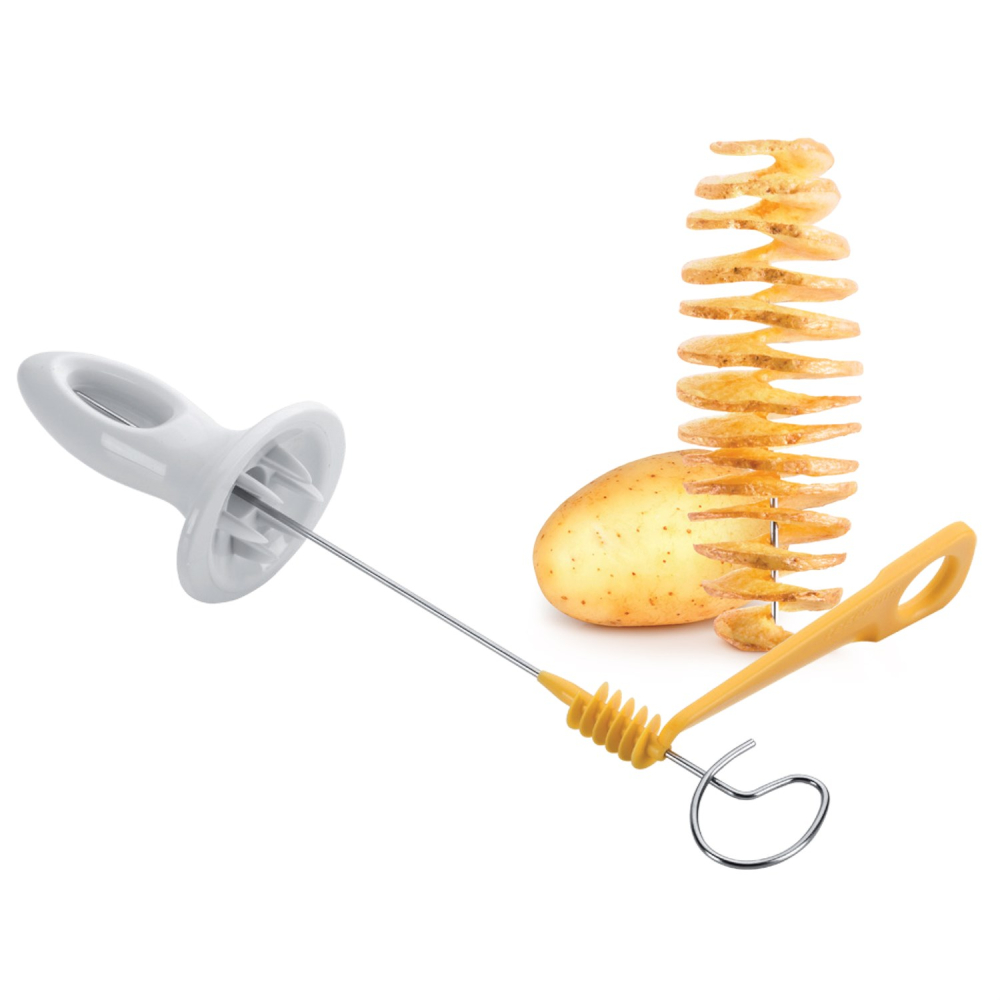 Det är lätt att göra tunna dekorativa och läckra potatisspiraler med denna smarta spiralkniv från Tescoma. Potatisarna kan därefter friteras i olja, men man kan också pensla potatisarna med olja och strö dem med salt, och färdigställa dem i ugnen. Spiralkniven kan också användas till t.ex. större morötter och rättikor. Tål diskmaskin.