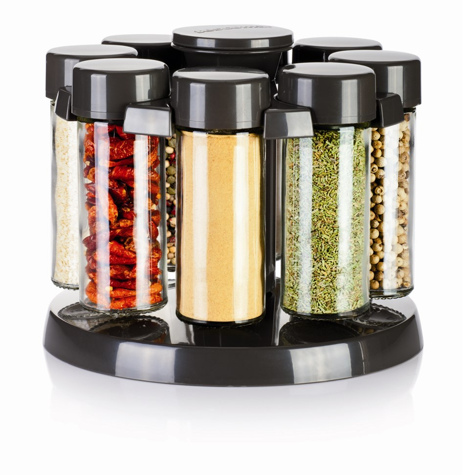 Kärt barn har många namn, men med denna kryddkarusell har du en lätt och överskådlig överblick över alla dina torkade eller frystorkade kryddor. Kryddkarusellen består av 8 glas. Till varje glas medföljer plastlock med antingen 1 eller 7 hål, vilket gör att oavsett vilken krydda du väljer att hälla i de medföljande kryddglasen, har du efteråt kontroll över doseringen. Du kan självklart också låta bli att sätta på de medföljande plastlocken om du har extra stora kryddprodukter i glaset, för det medföljande locket sluter helt tätt och gör att arom och smak från kryddorna bevaras tills de ska användas.