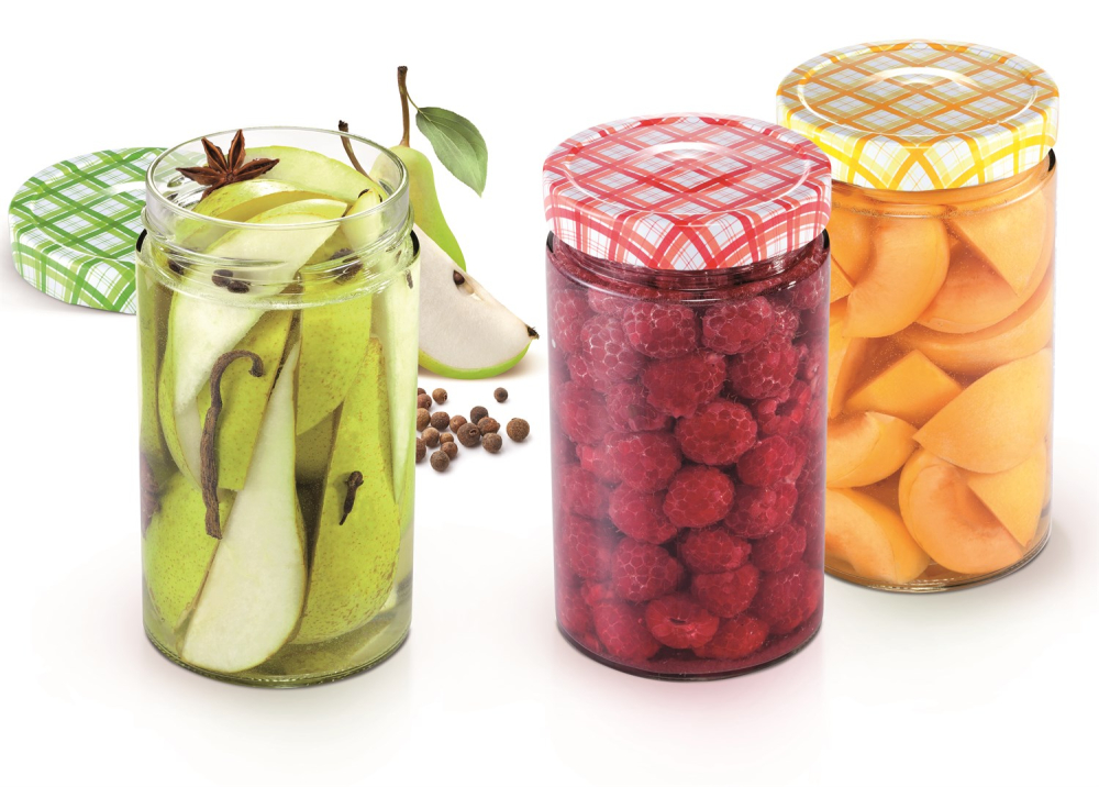 Glas för konservering och förvaring av t.ex. hemmagjord sylt etc. Setet består av 3 glas med lock i 3 olika färger. Locket är med en så kallad twist-off skruvlock med "klick"-funktion för konservering och pastörisering vid max. 95 grader. Locket är inte lämpligt för oljehaltiga produkter.