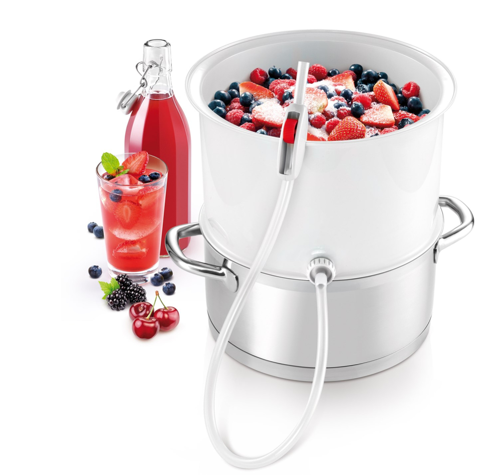 Denna saftkokare som inte tar mycket plats är perfekt för tillagning av frukt- och grönsakssirap, naturliga juicer, geléer och sylt. Lämplig för alla kastruller och grytor med en diameter på 24 cm. Tillverkad av värmebeständig plast av hög kvalitet.
