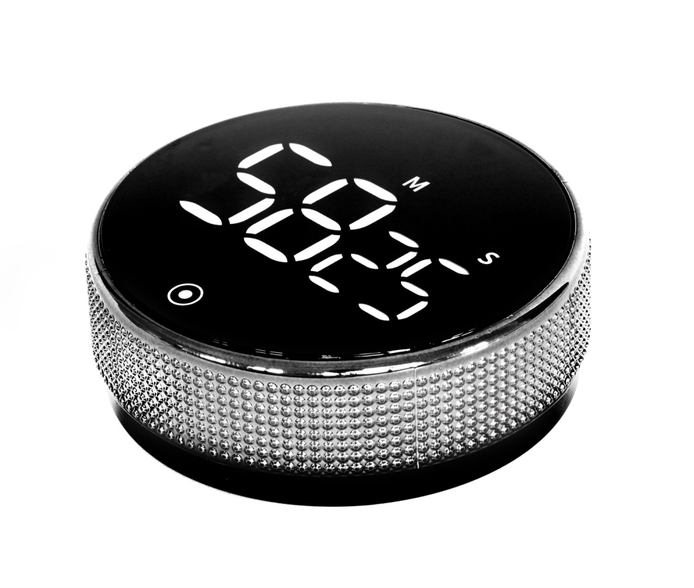 Smart timer med stora siffror och enkel design. Timern aktiveras genom att trycka på framsidan av klockan och ställs in genom att vrida den yttre sidan till önskad tidpunkt. Stängs av automatiskt efter användning och återgår till senast mätta tid.