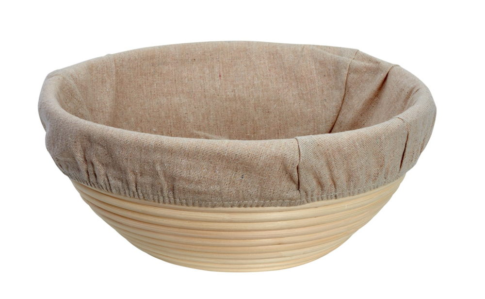 Denna stora jäskorg i rotting/peddigrör, används för jäsning av bröd och ger ett vackert mönster på brödet. Arbetar du med fuktiga degar, är det en fördel att använda det avtagbara tyget så att degen inte fastnar i korgen under jäsning. Oavsett om du använder korgen med eller utan tyg är det en fördel att strö med rismjöl innan degen läggs för jäsning. Rismjöl blir inte fuktigt och absorberas därför inte i degen, men ger en fin yta på brödet. Korgen borstas ren med en styv borste efter användning, eller torkas av med en hårt urvriden trasa. Korgen tål inte att diskas med tvål och under rinnande vatten.
