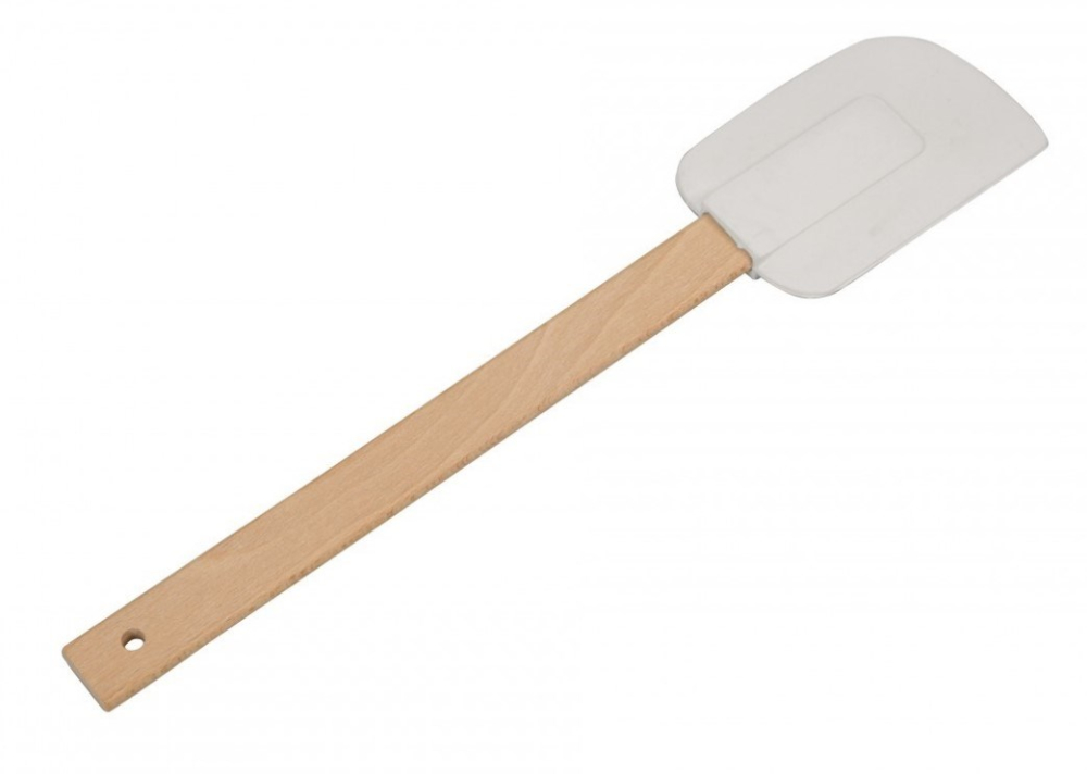 Degskrapa med handtag tillverkat i europeiskt bokträ. 27 cm lång.