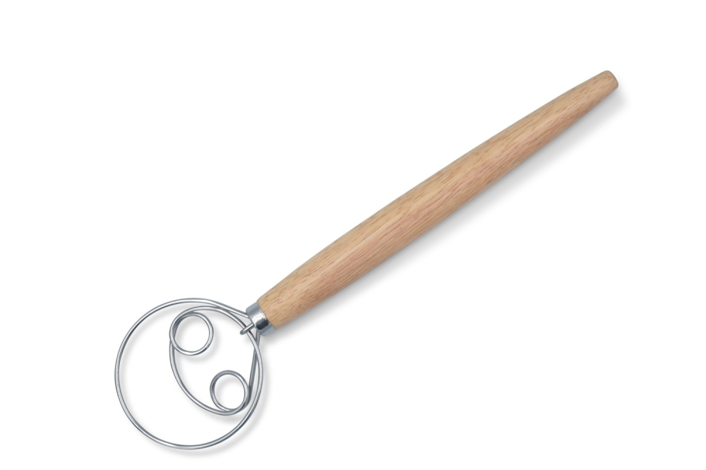 Denna degblandare / färsblandare är fantastisk när en deg eller färs ska samlas, innan man börjar knåda sin deg. Huvudets utformning gör arbetet lätt, och det kraftiga trähandtaget ger ett bra och säkert grepp